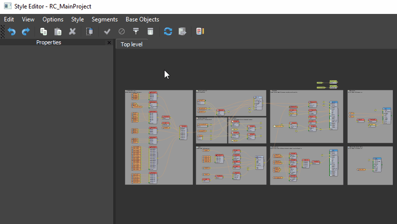 El editor basado en nodos ahora es mucho más fácil de usar. En versiones anteriores, el editor de estilos se cerraba al seleccionar otro objeto. En RailClone 6, el editor de estilos permanece disponible para que pueda seguir editando el gráfico mientras interactúa con el resto de la escena. También hay muchas más mejoras para facilitar el trabajo, como nuevas formas de importar objetos de escena, herramientas para facilitar la lectura de los gráficos, técnicas simplificadas para crear macros, nuevas opciones de aleatorización y mucho más.