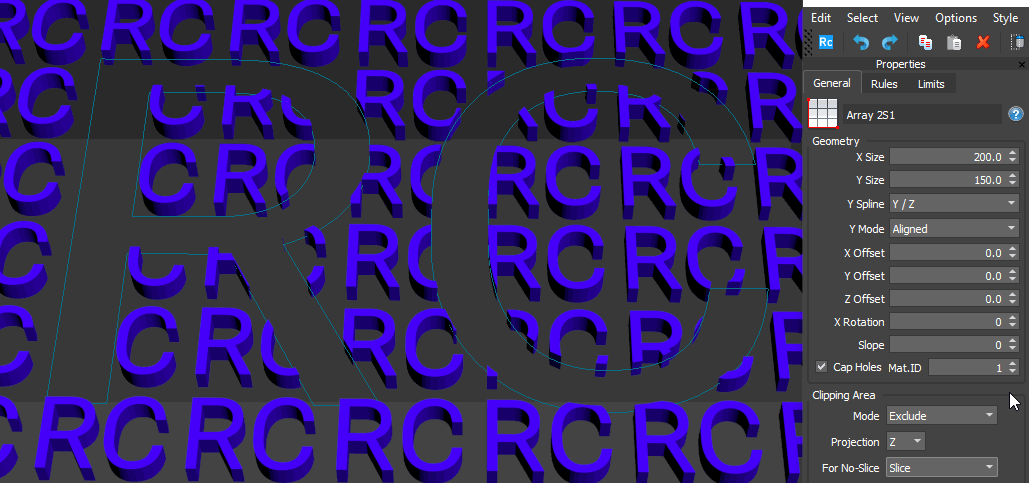 Se han mejorado los modos de deformación avanzados de RailClone, como plano y vertical en la parte superior e inferior. En versiones anteriores, la posibilidad de mezclar los modos escalonado y vertical se limitaba a la geometría por encima de una ranura. En RailClone 6, ahora puede utilizar estas funciones independientemente de que un segmento esté por encima de la ranura, por debajo de la ranura o que abarque ambas.