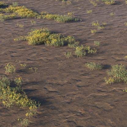 Start with a grass base layer. This version has minimal wear with small patches of brown or missing grass. Use Large presets to scatter patches of grass for filling large areas.