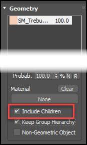 Pour utiliser cette fonctionnalité, sélectionnez l'objet supérieur de la hiérarchie et cochez l'option Géométrie > Inclure les enfants.