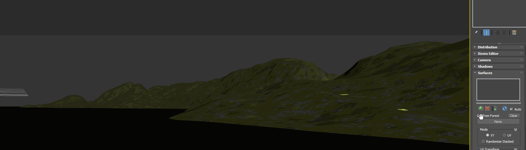 Forest Pack 8 introduit également certaines fonctionnalités souvent demandées dans le mode Surface UV, le rendant ainsi beaucoup plus flexible. Dans les versions précédentes, pour utiliser le mode UV, vous deviez sacrifier la possibilité d'utiliser tout autre type de zone. Dans la version 8, vous pouvez désormais utiliser Spline, Object et d'autres zones en combinaison avec des surfaces UV en les projetant le long de 3 axes à l'aide du nouveau paramètre Area->Projection Axis. Le mode Edge est également pris en charge lors de l'utilisation de zones splines.