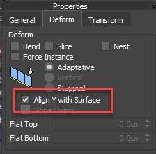 - To rotate the cars to follow the road’s camber, all you need to do is go to the Segment’s settings and go to the Deform Tab. Activate the checkbox labelled Align Y with Surface and the cars now rotate so that all 4 wheels are on the ground!