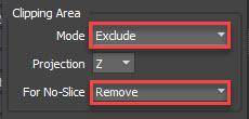 - The clipping area actually has a couple of modes too. For example, you can choose whether the clipping area removes the segments inside its boundary, or retains them and deletes everything outside. You also have three options to choose how to handle segments for which slice is disabled.