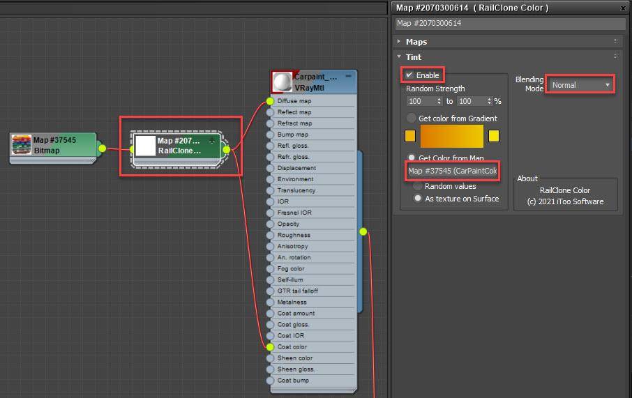 - RailClone Colour is able to randomise and tint maps to provide nearly limitless colour variations. One of the most useful options is the ability to use a fixed selection of specific colours by picking them from a map.