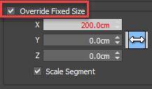 - Enable the Fixed Size property and increase the X Size value. As you can see, you are creating a gap between the cars.