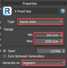 - You’ll notice the gaps are still the same, and that is because currently a random number is being generated just once and used everywhere. We want a new random number each time this node is placed in the array. To do that, change the Generate On mode to Segment.