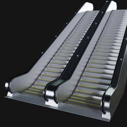 Escalators with solid steel sides embody a robust and modern aesthetic in contrast to their glass counterparts. Designed with steel side panels, they exude a solid and sturdy appearance, adding a sense of durability and strength to the environment. These opaque sides offer a more closed and structured look while maintaining a contemporary touch. The combination of efficient functionality typical of escalators with the robust presence of steel makes them an appealing choice for industrial settings, corporate buildings, and other spaces where a modern and enduring design is desired. They do include controls for animations.