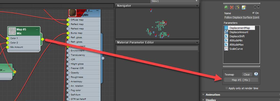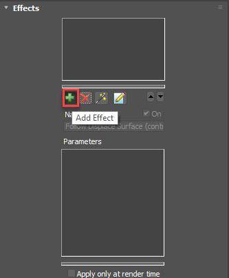 - Add the displacement map that's applied to the surface to the Effect’s DisplacementMap Parameter.